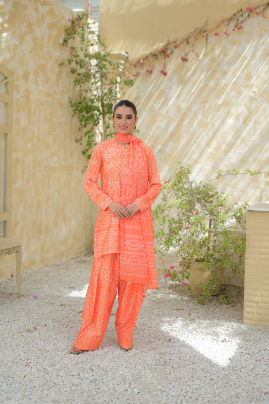 3 piece orange chunri silk set
