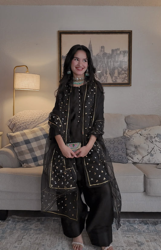 LOTUS 3 Piece Farshi shalwar set -Black
