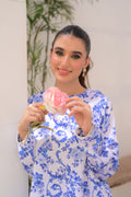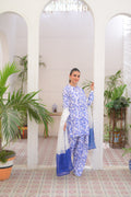 Experience the perfect blend of tradition and modern style with this 3-piece floral printed silk set. Crafted from fine Shamouse silk, the shirt features a simple yet trendy cut, complemented by a traditional farshi shalwar . The blue and white floral print adds a fresh, sophisticated touch, while the organza dupatta completes the ensemble with light, airy grace. Ideal for those who appreciate quality fabrics and timeless design in one exquisite outfit. Size chart below